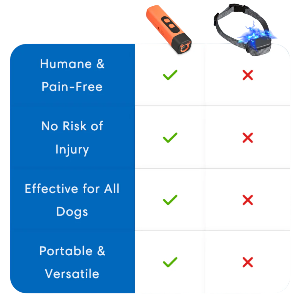No shocks. No fear. Just safe ultrasonic tones that gently correct barking.