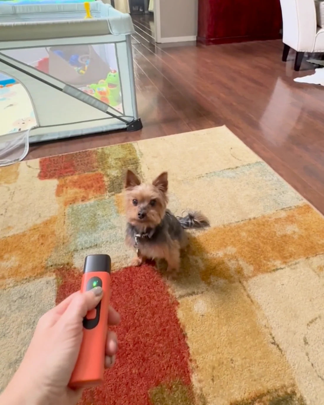 "To be honest, I was skeptical, but BarkStop really works! As soon as our Chihuahua mix starts barking at the door again, I press the button - and he stops immediately. Super easy to use and finally some peace and quiet in the house!"